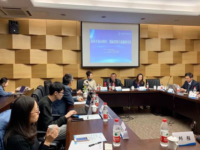 上海市国际贸易学会副会长沈瑶教授回顾了改革四十周中阶段性的开放,认为继续高规格的开放是目前历史的选择,提出改革促进开放,开放推进改革;上海财经大学现代金融研究中心丁剑平教授发表自贸区账户与人民币国际化的主旨演讲,提出自贸区账户需要对接进博会以推动人民币国际化的进程;上海社会科学院世界中国学研究所所长沈桂龙教授认为中国企业对外投资可以从投资方式、投资区域与企业自身的创新能力方面提高“资本”走出去的质量;上海财经大学商学院鲍晓华教授提出中国需要提高在多边贸易体制中的轮轴地位促进RTA协定;上海对外经贸大学法学院殷敏副教授发表了“一带一路”沿线国家之间贸易合作的国际经贸规则的中国方案,提出了规则的制定是未来发展的方向。与会专家上海社科院国际金融研究室主任周宇教授、上海市人民政府发展研究中心开放研究处李锋处长、上海对外经贸大学石士钧教授、张继红教授作了精彩点评。