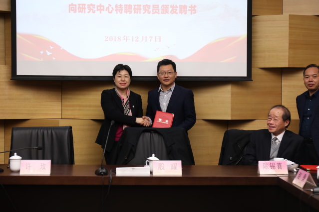 仪式上还举行了研究中心专家顾问、特聘研究员的聘任仪式,殷耀向专家顾问代表陈锡喜教授颁发聘书,许玫向研究中心特聘研究员代表李冉、何益忠、王朝科三位教授颁发聘书。陈锡喜、李冉分别作了发言。陈锡喜表示,我校研究中心筹建具有良好的基础,希望研究中心秉持“资政育人”的使命,在理论研究、人才培养、决策咨询三方面作出贡献。李冉希望研究中心发挥学校特色优势,打造成为开放合作的重要平台,他们将会积极助力研究中心发展。