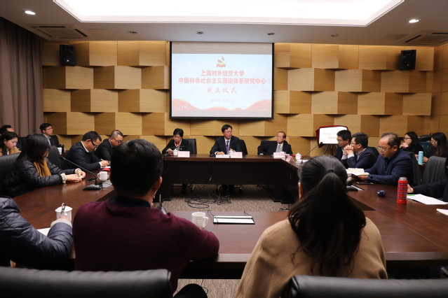 12月7日下午,学校中国特色社会主义理论体系研究中心在古北校区博观楼211举行成立仪式。校党委书记殷耀,校党委副书记、纪委书记许玫,上海交通大学讲席教授、国务院马克思主义理论学科评议组成员陈锡喜教授,复旦大学马克思主义学院常务副院长李冉教授,华东政法大学马克思主义学院院长何益忠教授,中央马克思主义理论研究和建设工程专家、我校马克思主义学院王朝科教授,中国特色社会主义理论体系研究中心主任、图书馆直属党支部书记赵勇教授,学工部部长许继亮,出席成立仪式。成立仪式由党委宣传部部长严大龙主持。