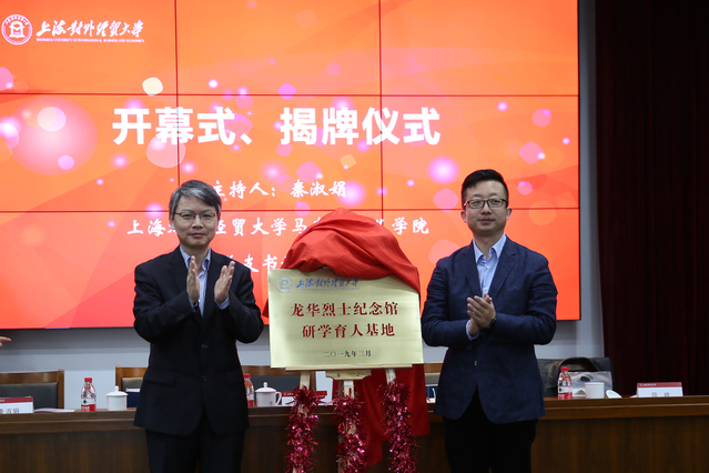 仪式上,祁明与薛峰共同为上海对外经贸大学马克思主义学院与龙华烈士纪念馆共建研学育人基地揭牌。