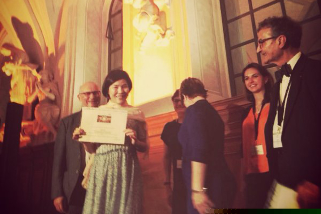 在13日晚上在里昂艺术中心举行的晚宴上,主办方宣读了会议最佳论文获得者。大会主席、SEAM(Socio-Economic Approaches for Management, 管理中的社会经济方法)的创始人、法国国家荣誉军团骑士勋章(法国政府颁发的最高荣誉)获得者Henri Savall博士为齐佳音教授颁发了荣誉证书。该篇论文是本次会议唯一一篇获奖的英文学术论文。