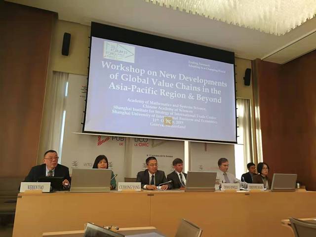 10月8-11日,我校上海国际贸易中心战略研究院执行院长姚为群教授在瑞士日内瓦出席2019年世界贸易组织公众论坛(2019 WTO Public Forum),并于10月11日上午在世贸组织总部E厅主持由我校上海国际贸易中心战略研究院与中国科学院数学和系统科学研究院共同主办的“亚太地区内外全球价值链新发展”研讨会(Workshop on New Development of Global Value Chains in Asia-Pacific Region & Beyond)。本次研讨会是上海国际贸易中心战略研究院首次在境外办会,是推进其国际化迈出的重要一步。