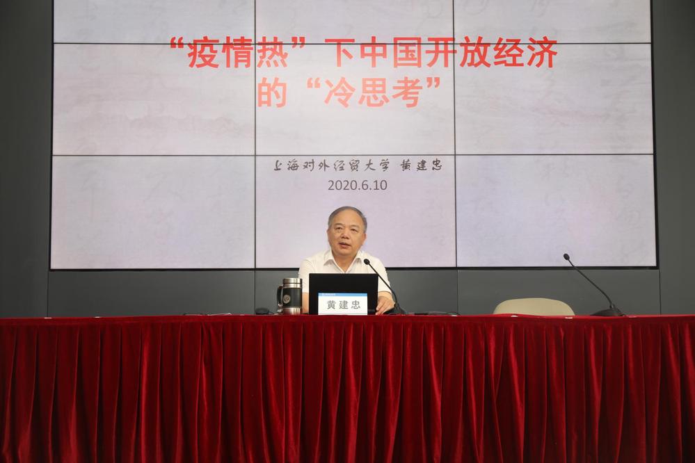 为迎接学校60周年校庆,进一步丰富防疫期间研究生学术生活,6月10日下午,研究生院校庆系列活动“学术中国”(第一季)首场讲座在学校哔哩哔哩平台直播开讲。研究生院院长、国际经贸学院院长,博士生导师黄建忠教授作了题为“‘疫情热’下中国开放经济的‘冷思考’”的学术讲座。讲座由党委研工部副部长、研究生院副院长乔檀主持。2000多名师生在线观看了本场讲座。