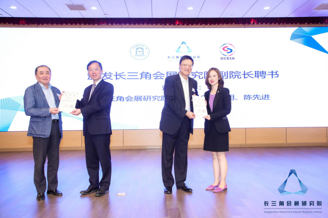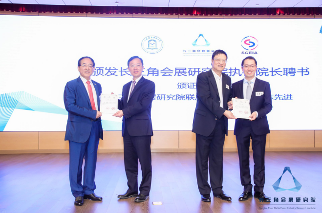 为了保证长三角会展研究院的高水准,长三角会展研究院在三省一市范围内聘请了相关知名专家学者、会展业管理部门官员和行业协会负责人组成专家委员会。上海市会展行业协会党委副书记、会长、长三角会展研究院联席执行院长桑敬民宣读长三角会展研究院专家委员会名单,三省一市商务主管部门领导、长三角区域合作办公室领导、长三角会展研究院联席院长共同为上海市国际贸易促进委员会副会长顾春霆等19位首批专家颁发了聘书。随后,举行了长三角会展研究院和长三角会展联盟揭牌仪式。