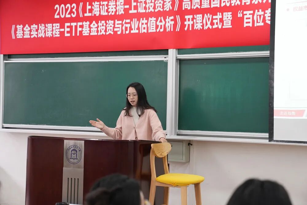 4月19日,上海对外经贸大学金融管理学院《上海证券报-上证投资家》高质量国民教育系列专题课程《ETF投资与行业估值分析》暨“百位专家投教行”2023进高校启动与开课仪式成功举办。本次《ETF投资与行业估值分析》课程,既是上海证券报-上证投资家牵头开设的第五门高质量国民教育系列专题课程,也是在上海对外经贸大学开设的第二门学分选修课。