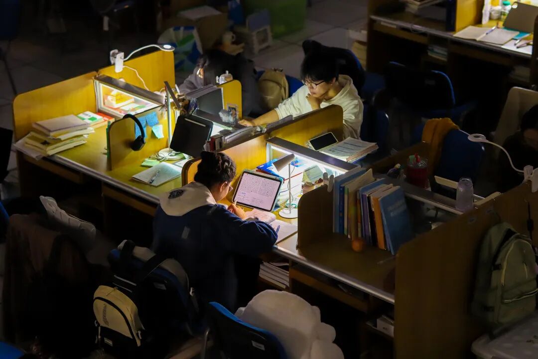 上海政法学院学子们在冬日夜里挑灯自习