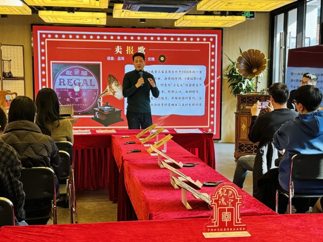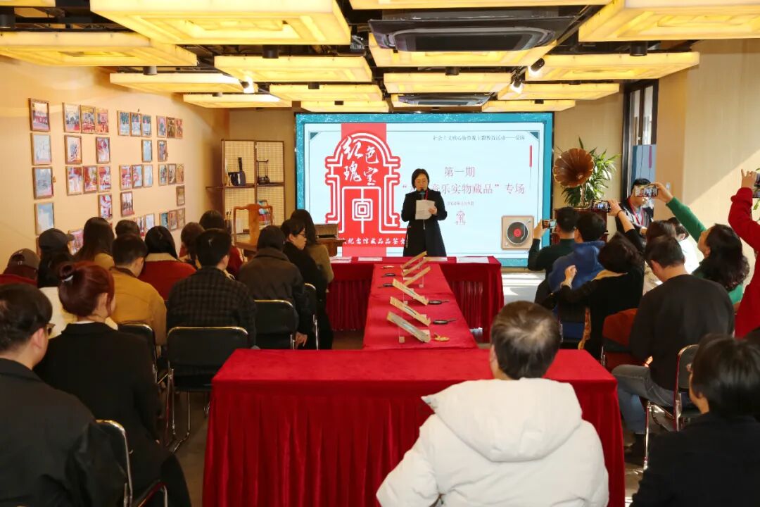 随后,首期“红色瑰宝”藏品品鉴会在中共四大纪念馆二楼初心讲堂举行。本次活动以“时代强音”为主题,聚焦左翼音乐相关藏品及其背后的故事。