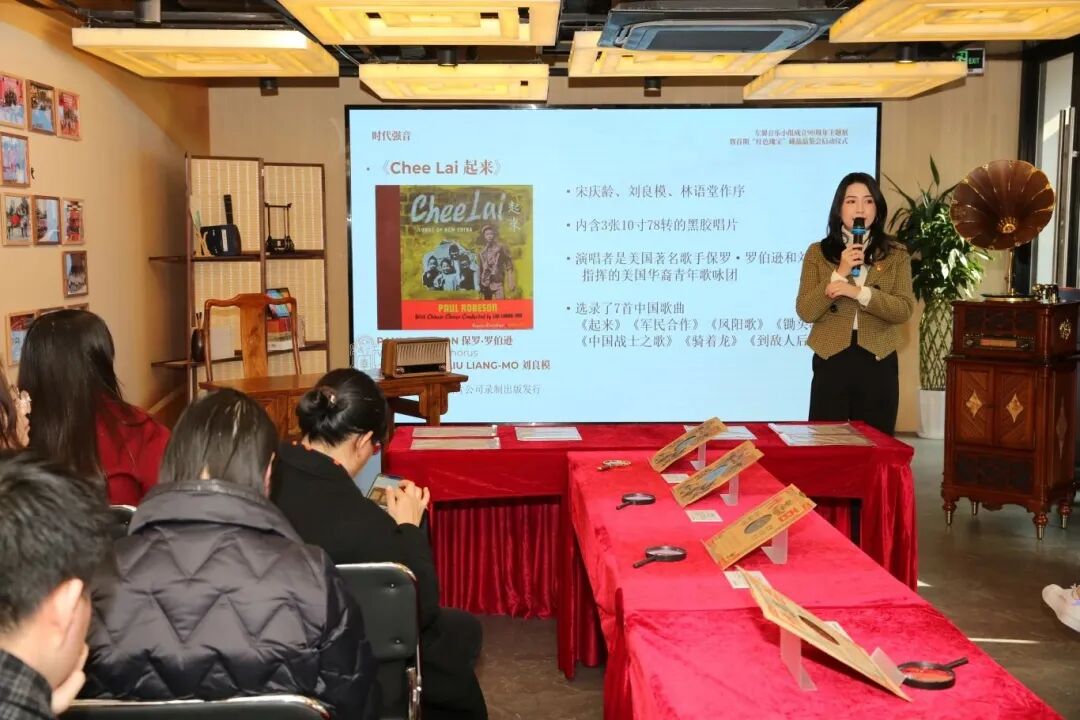 中外文化艺术交流协会办公室副主任、上海黑胶专业委员会秘书长沈莉从留声机与上海的缘起及虹口名人名家故事谈起,分享了包括《义勇军进行曲》保罗·罗伯逊中英文双语演唱版本在内多张唱片及其背后的故事。