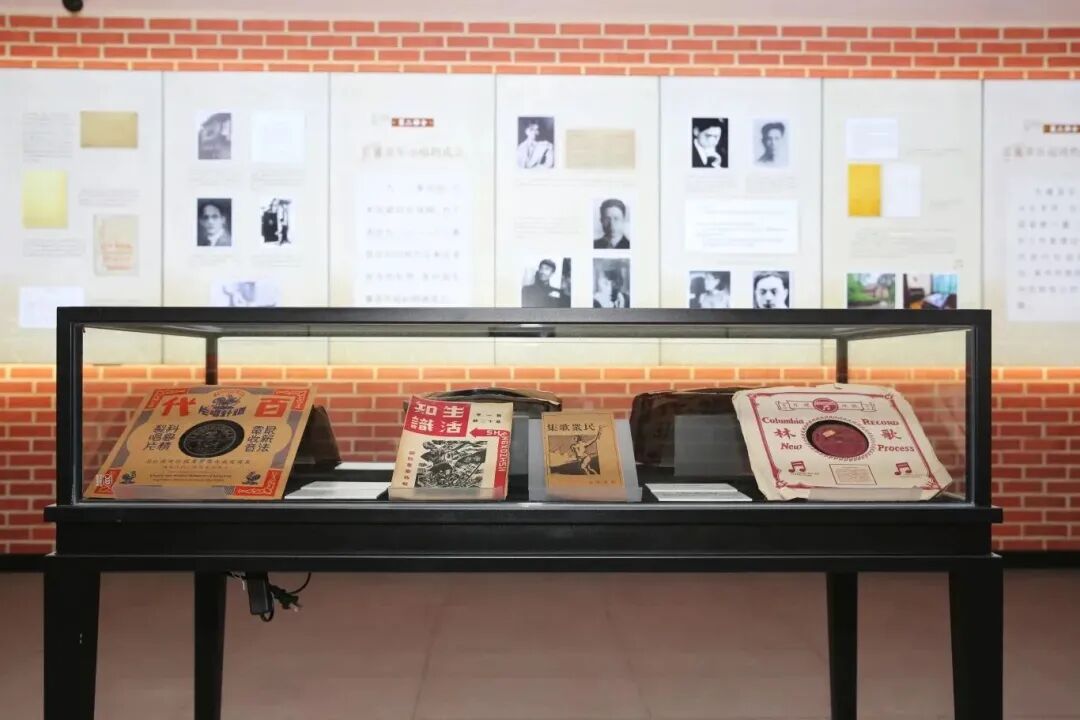 《时代强音——左翼音乐相关收藏品实物展》与上述图文展同步推出,展品由收藏家杨涌提供。展区从中共四大纪念馆一楼走廊延伸至数字展厅。展览以27张黑胶唱片、8张报纸等共44件实物生动展现了左翼音乐的发展历程,以及抗战音乐对左翼音乐的继承和转化,突出了早期左翼音乐与电影的密切联系,纪念知名左翼音乐家为中国音乐发展作出的卓越贡献。