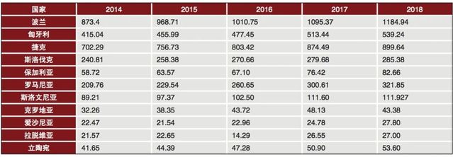 表3 2014—2018年德国与欧盟中东欧成员国贸易额(亿欧元)