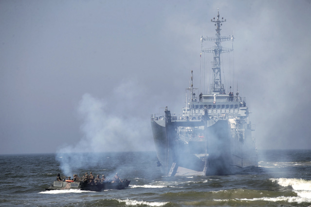 中东欧诸多国家是美国单边主义的支持者,他们参与美国和北约领导的军事与维和行动,欢迎并邀请美国在本国部署军事设施,使其正日益从地区安全的消费者转变为地区安全的提供者。图为2018年6月4日,北约大规模年度海军军演“波罗的海行动”在立陶宛拉开帷幕,波兰海军舰艇参加军演。(图片来源:新华社)