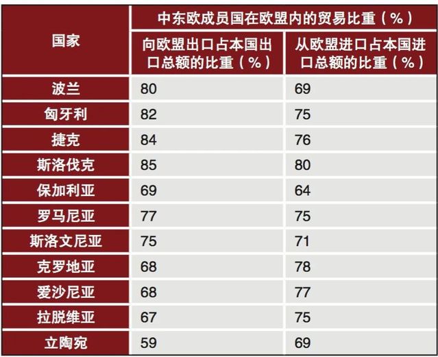 表2 2018年欧盟中东欧成员国在欧盟内贸易状况