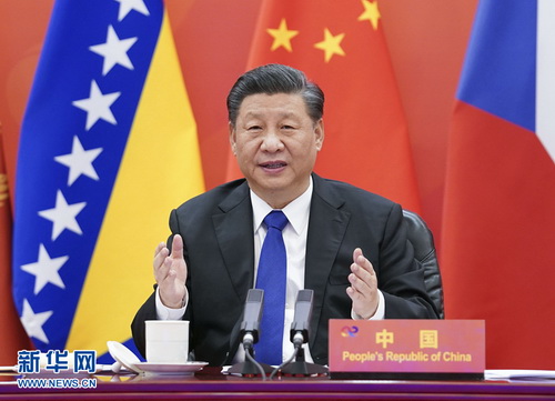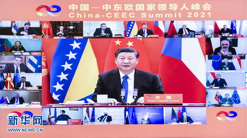 2021年2月9日,国家主席习近平在北京以视频方式主持中国-中东欧国家领导人峰会,波黑、捷克、黑山、波兰、塞尔维亚、阿尔巴尼亚、克罗地亚、希腊、匈牙利、北马其顿、斯洛伐克、保加利亚、斯洛文尼亚、爱沙尼亚、拉脱维亚、立陶宛、罗马尼亚等中东欧国家元首、政府首脑和高级别代表出席。习近平发表题为《凝心聚力,继往开来携手共谱合作新篇章》的主旨讲话。习近平强调,中国-中东欧国家合作坚持共商共建、务实均衡、开放包容、创新进取,是多边主义的生动实践,是中欧关系的重要组成部分。中国愿同中东欧国家顺应时代大势,实现更高水平的共同发展和互利共赢,携手推动构建人类命运共同体。