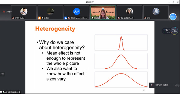 In the second part of this workshop, the speaker used her published meta-analysis paper Multimedia Effect in Problem Solving: A Meta-Analysis as an example to review each step of the research process, from the literature review to the discussion and conclusion. Besides, Dr. Hu stressed the three stages of the research method - data collection and reduction, coding protocol, and computation of effect size. From the logical and coherent introduction to case analysis, the present audience deepened their understanding of meta-analysis. Finally, they are encouraged by Dr. Hu to apply meta-analysis to writing and to keep an assiduous and dauntless spirit in the face of academic difficulties.