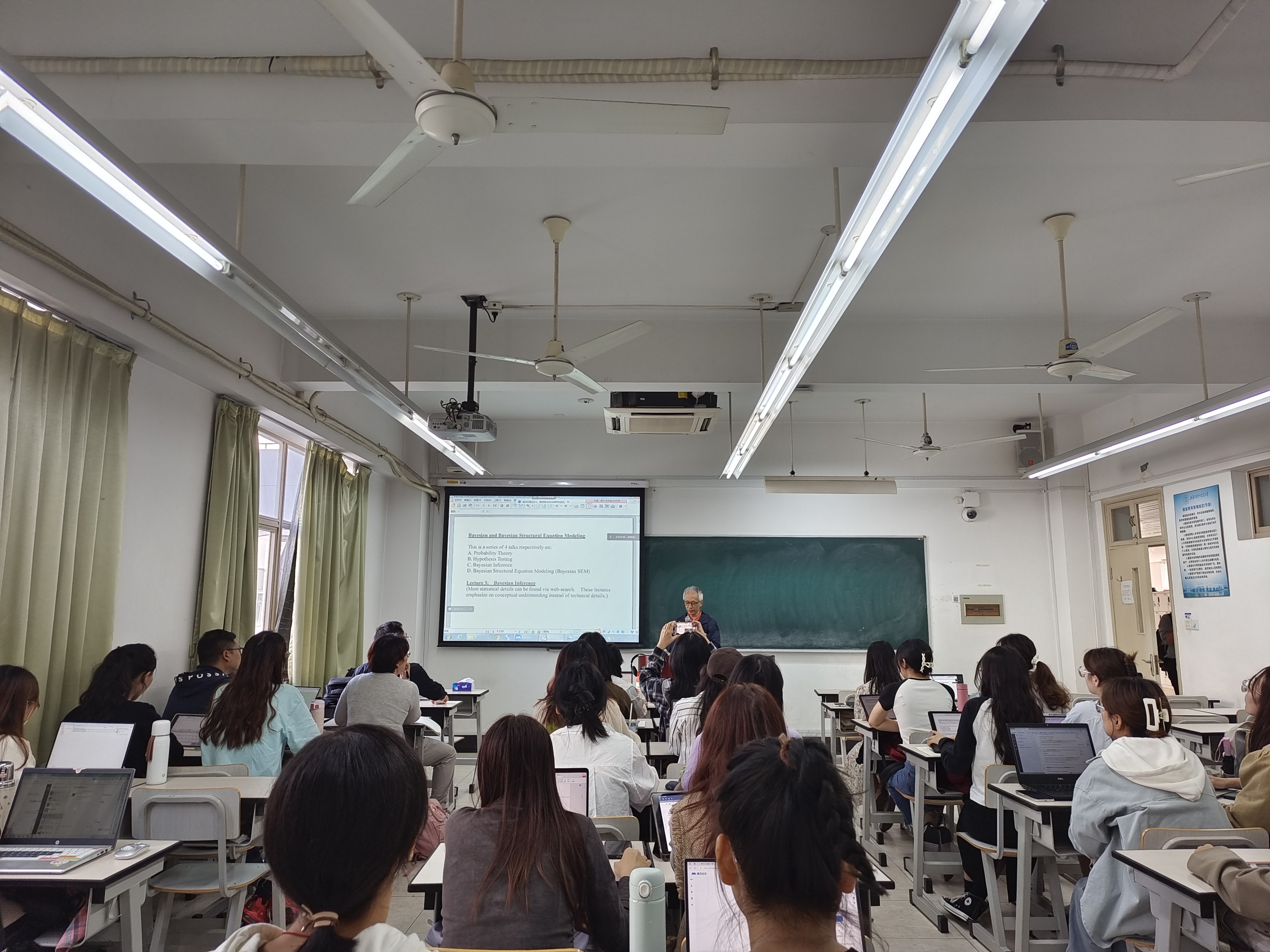 During the Q&A session, the students actively asked questions and had in-depth exchanges with Professor Leung, which further deepened their understanding of Bayesian and Bayesian Structural Equation Modeling. During the whole lecture, Professor Leung interacted with the students, and his humorous style of expression left a deep impression on everyone. The atmosphere was harmonious.