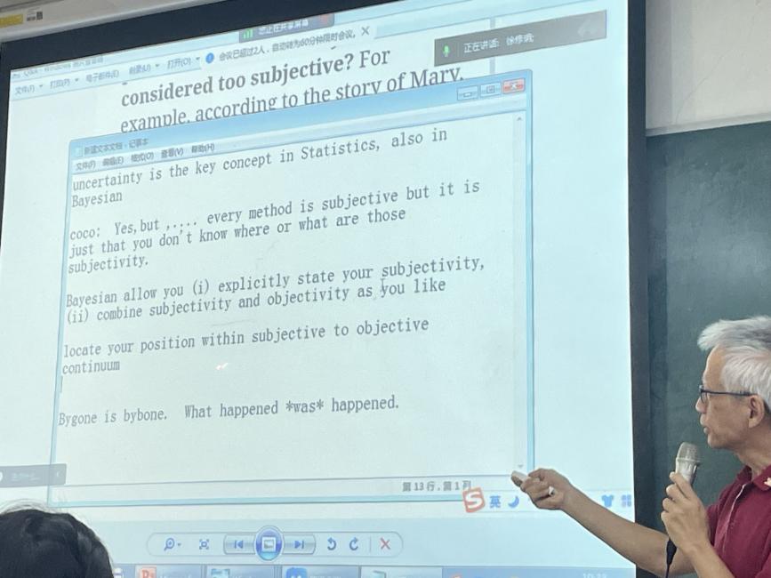 At the beginning of the first lecture, Professor Leung first introduced himself and introduced his research experience in the field of education and statistics. Using many interesting examples from life, he led on the topic of Bayesian, which aroused the participants’ strong interest in the topic. Professor Leung then explained Bayesian concepts in depth through several vivid examples, including the basic principles of Bayesian thinking and the differences from classical hypothesis testing. The participants gradually understood the Bayesian through practical cases. Its main concepts include prior, likelihood, and posterior.