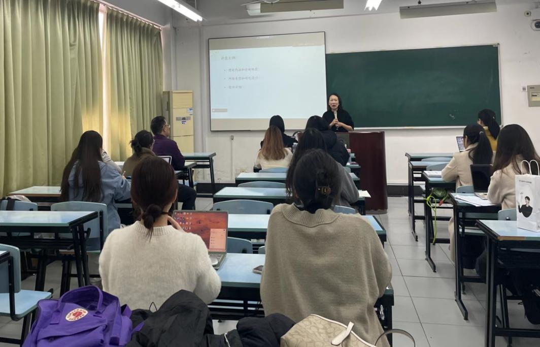 2023年11月16日,应上海对外经贸大学语言教育与测评中心 (CLEAR)邀请,上海外国语大学英语学院李茨婷教授及其研究生朱逸琳为我院师生带来了一场主题为 “社会网络分析与语言教育之交叉研究” 的线下讲座。本次讲座由CLEAR中心主任蔡雨阳教授主持,近二十名师生在教学楼SC305线下参加了此次讲座。