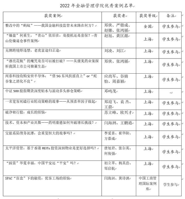 此外,闫海洲教授撰写的案例《SPAC“盲盒”下的融资:优客工场的烦恼》于2022年4月收录于中国工商管理国际案例库,这是金融学院老师连续两年获得收录。