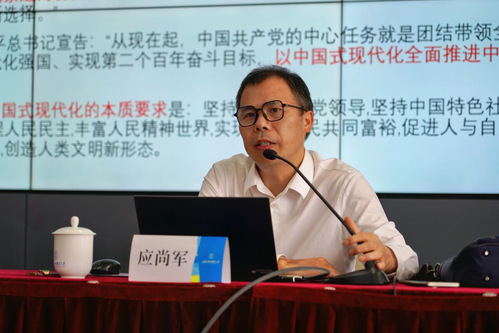 为深入开展学习贯彻习近平新时代中国特色社会主义思想主题教育,5月19日下午,我院在信息楼503举办“主题教育金融视角”系列专题讲座第三讲,由学院副院长应尚军做主题为“中国式现代化引领下的数字经济与数据资产评估”的讲座。学院院长张铁铸出席讲座,党员师生代表共计50余人到场聆听学习。讲座由学院院长张铁铸主持。