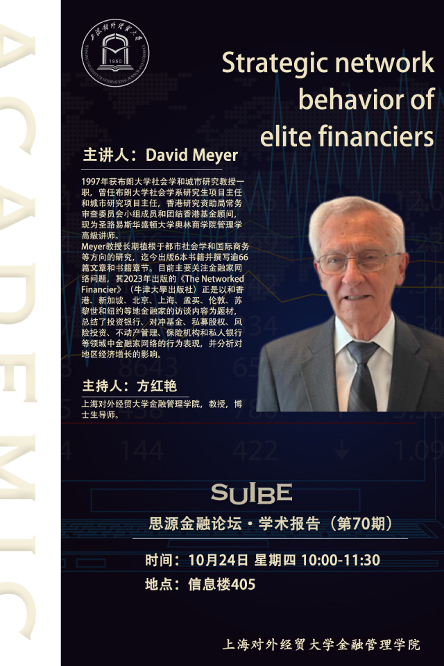 【 SUIBE思源金融论坛——学术报告第70期 】Strategic network behavior of elite financiers