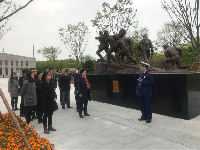 在刚建成的上海消防英烈纪念园内,全体党员瞻仰了《蹈火者》雕塑和消防英烈纪念碑,深切缅怀新中国成立以来为上海建设事业英勇献身的42名消防烈士。随后,消防员战士带领大家参观了“永恒的闪耀”上海消防英烈纪念展。