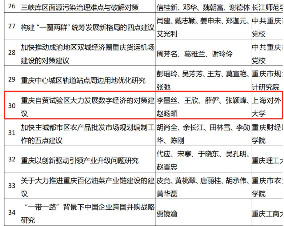 李墨丝研究员论文《重庆自贸试验区大力发展数字经济的对策建议》获第八届重庆市发展研究奖三等奖