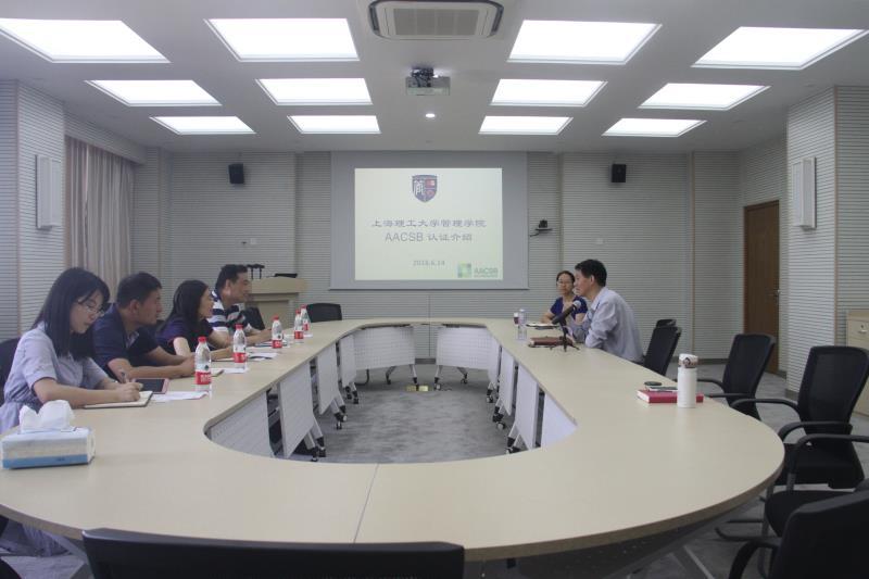 2018年6月14日下午,规划处姜秀珍教授、朱心明、刘伯煜三人与工商管理学院张鹏老师赴上海理工大学管理学院调研AACSB认证。上海理工大学管理学院院长周溪召教授、国际认证办主任张昕瑞老师首先向我们介绍了管理学院的概况以及AACSB的认证历程。姜秀珍教授从认证的边界划分、人员配备、资金投入、课程建设等方面与友校进行交流与学习。