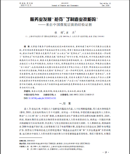 铁瑛、崔杰,“服务业发展‘抢夺’了制造业技能吗?—−来自中国微观层面的经验证据”,财经研究,2020年第12期