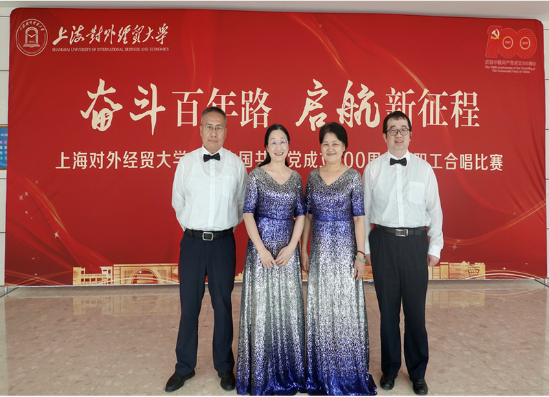 在中国共产党成立100周年来临之际,6月25日下午,校工会主办,党委宣传部、教师工作部、校团委共同协办的“奋斗百年路启航新征程”上海对外经贸大学庆祝中国共产党成立100周年教职工合唱比赛中,国际经贸研究所4位教师代表积极参与,演唱曲目《在灿烂阳光下》获得一等奖。