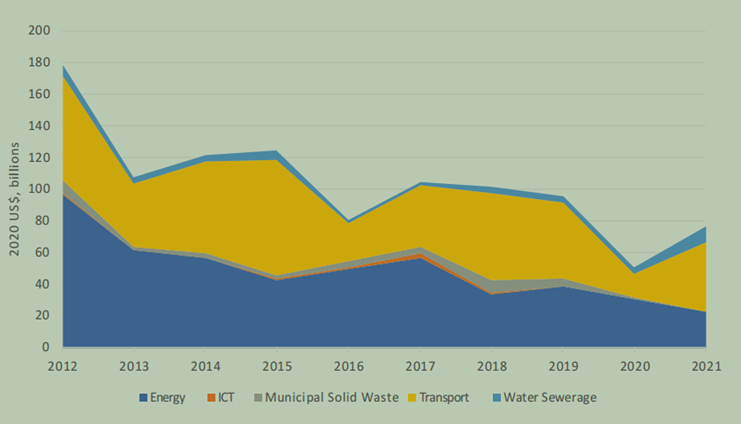 图4 2012-2021中低收入国家各部门领域PPI投资