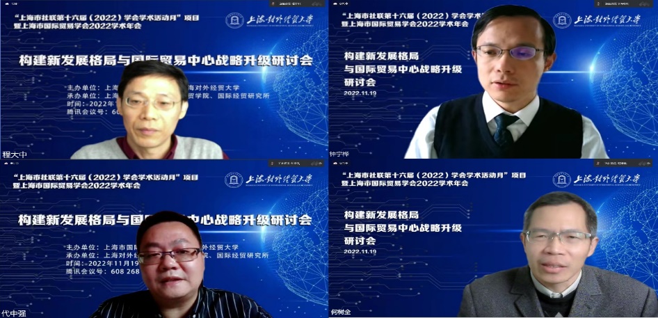 11月19日,由上海市国际贸易学会与上海对外经贸大学主办,上海对外经贸大学国际经贸学院、国际经贸研究所承办的“上海市社联第十六届(2022)学会学术活动月”系列学术活动——上海市国际贸易学会2022年学术年会暨“构建新发展格局与国际贸易中心战略升级研讨会”,以线上会议方式顺利召开。