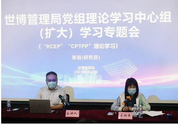 张磊研究员受邀为与会人员作“‘RCEP’、‘CPTPP’理论学习”的专题辅导