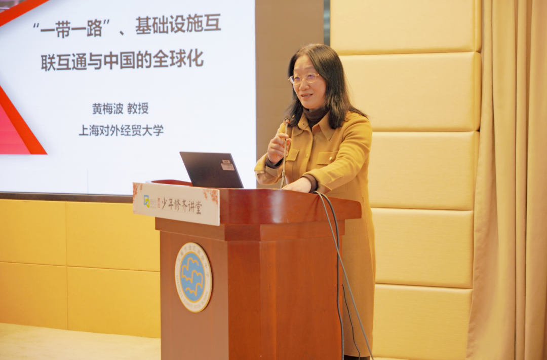 2023年12月26日,国际发展合作研究院院长、国际经贸研究所所长黄梅波教授受邀参加了“‘奋斗青春担大任,自信自强创伟业’2023年上海市未成年人修身励志讲堂巡讲暨《筑梦丝路青年有为》闵行区‘少年修齐讲堂’”活动并作了题为《“一带一路”基础设施互联互通与中国经济的全球化》的主旨演讲。