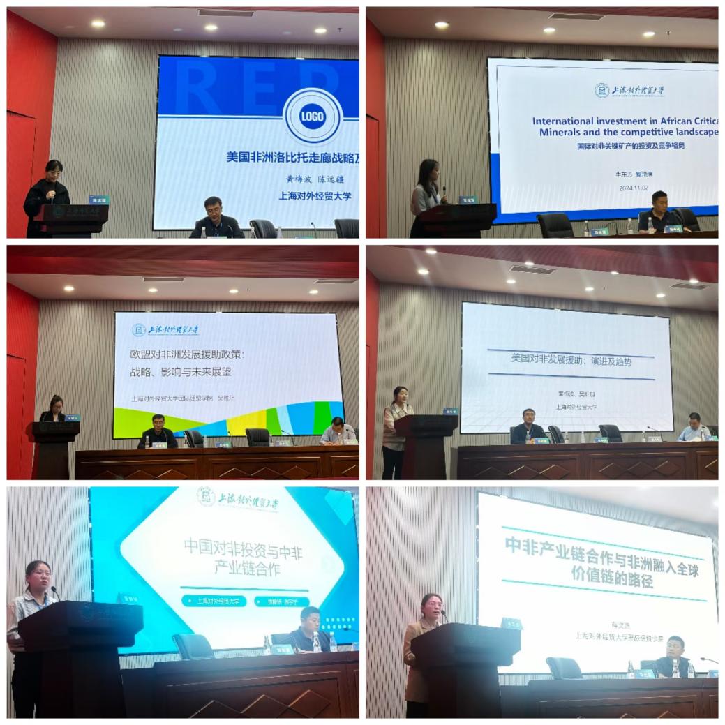 会议设主旨演讲及三场分论坛,议题涵盖“中非携手推进现代化:机遇和挑战”“非洲现代化探索:历史与现实”以及“青年论坛”。黄梅波教授在第一分论坛“中非携手推进现代化:机遇和挑战”中担任评议专家,对相关发言进行了专业性点评。在老师的指导与支持下,我校国际经贸学院硕士研究生积极参与学术投稿,共有六篇论文入选会议青年论坛,包括研二研究生吴昕玥,研一研究生陈远疆、夏瑞青、蒋文迪、贾静妍、吴雅琪的论文,研讨论文的题目分别为:美国对非援助:演进及趋势;美国非洲洛比托走廊战略及其影响;国际对非洲矿业的投资及竞争格局;中非产业链合作与非洲融入全球价值链的路径;中国对非投资与中非产业链合作;欧盟对非发展援助政策:战略、趋势及其影响等。会上,我校硕士研究生以扎实的学术研究和逻辑清晰的PPT展示赢得了参会学者的广泛好评,充分展现了我校在提升研究生学术研究与展示能力方面的成果。这不仅体现了研究生对非洲研究的热情和水平,也反映了我校在培养高素质国际发展合作及区域国别人才方面的卓越成效。