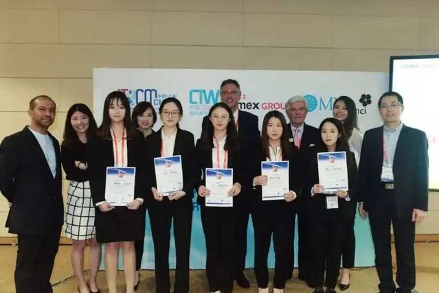 获得2019年IMEX-MPI-MCI未来领导者论坛国际大学挑战赛(IUC)东亚赛区冠军,前排中间五位同学分别为来自中德合作会展经济与管理专业2016级的张夏琬、罗蕴涵、李汤思远、朱莹、朱晓婷。