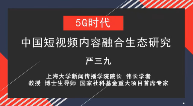 严三九院长做了题为《5G时代中国短视频内容融合生态研究》的主旨演讲。演讲内容围绕5G背景下,传媒业态演化及短视频跨越式发展的机遇、短视频内容融合生态转型升级的“瓶颈”、演化的驱动要素、引导与规范等展开。他表示,短视频内容融合生态,将向超高清、沉浸式、智能化和产品化等方向发展。在互动环节,严院长分享了上海大学会展专业的建设经验和品牌特色。