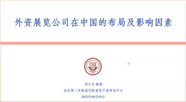 刘大可教授以《外资展览公司在中国的布局及影响因素》为题,发表主旨演讲。他指出,外资展览公司在北上广深市场分化明显。他围绕外资展览公司在中国境内的展会情况、主要特征、影响外资展览公司项目布局的主要因素等3个方面展开。最后,他从外资展览公司选择行为反思中国展览业的发展,就展览会的发展与市场规律的一致性、地方补贴对会展行业的影响以及如何推动我国展览业的高质量发展发表了独特见解。