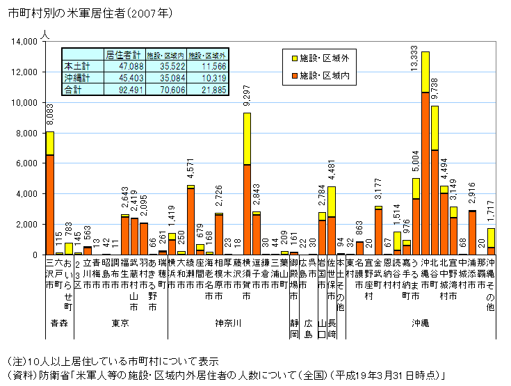 1972年,美军虽先将冲绳的行政管辖权移交日本,但美军仍占用民间土地达冲绳本岛的五分之一。但是另一方面,琉球缺乏这些美军基地,对其经济却也带来负面影响。1972年时,美军基地对琉球的经济贡献达27%,而现在则仅有5%。其差额由日本政府进行补助。