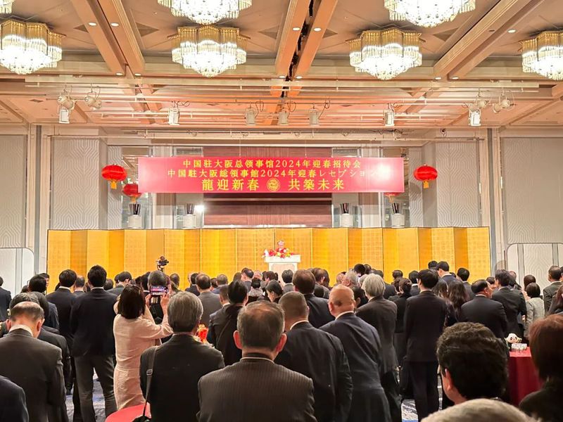 研讨会结束后,中国驻大阪总领事馆还举办了迎春招待会。两国嘉宾齐聚一堂,共同庆祝龙年春节的到来。