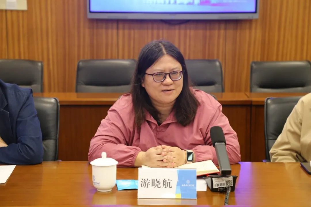 现场走访结束后,监督员一行来到德政楼317会议室开展座谈交流。在“处长微报告”环节中,教务处处长朱建明围绕《目标优化、模式创新,培养卓越对外经贸人才》主题,介绍了学校在本科人才培养模式上的创新举措及未来发展方向。教务处副处长张雯洁以《AI赋能本科教育教学布局与实施》为题,交流了学校在人工智能技术赋能本科教育方面的战略计划与实施成果。两位处长的报告内容丰富、见解深刻,使大家对学校布局AI赋能本科教育教学战略计划,不断深化本科人才培养,探索本硕博一体化培养模式改革有了更加全面、清晰的认识。