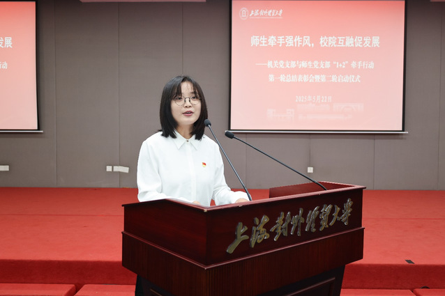 国际商务外语学院本科生第一党支部朱行善、法学院国际法学系教工党支部唐琼琼、会计学院审计系教工党支部梁思源、马克思主义学院教工第二党支部牟雪莲、机关党委人事处党支部俞越、保卫处党支部李少丹作为先进集体和个人代表分别进行交流发言。
