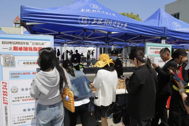 支部创新“线上 + 线下”宣传模式,线下邀请公安干警开展反诈讲座,2022年新生讲座当天超 2400 名学生下载 “国家反诈中心” APP;线上依托“平安上经贸大”公众号、失物招领微信群等平台,推送案例警示、防诈贴士,年均发布信息150余条。同时,组建由党员教师、平安志愿者组成的反诈宣讲团,深入学院开展“沉浸式”反诈情景模拟活动,覆盖师生超 8000 人次,校园诈骗发案率持续降低。