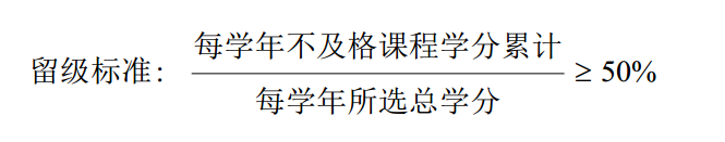 第三十八条 学生一学年不及格课程学分累计达到该学年所选学分二分之一,予以留级。