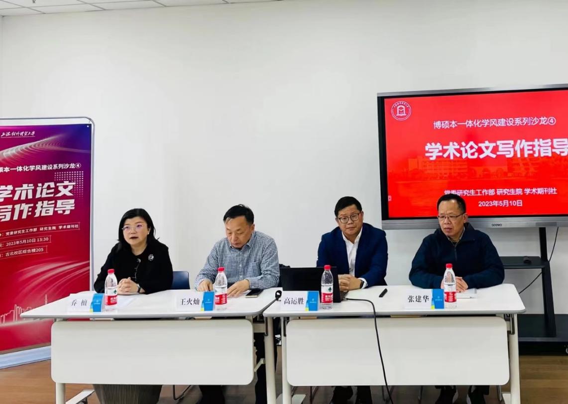 为进一步丰富学生的学术文化生活,加强学术研究指导,5月10日下午,党委研究生工作部、研究生院、学术期刊社联合举办博硕本一体化学风建设系列沙龙之四“学术论文写作指导”,活动在古北校区综合楼205室举办。学校学术期刊社副社长高运胜教授、《国际商务研究》编辑部主任张建华副教授、《上海对外经贸大学学报》编辑部主任王火灿副研究员出席活动并作专题辅导,活动由党委研究生工作部副部长、研究生院副院长乔檀主持。