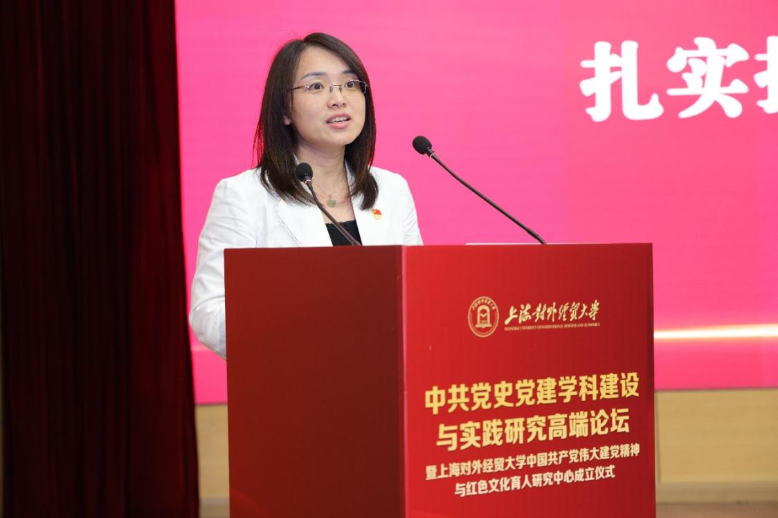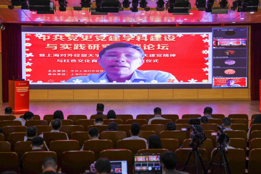 为全面学习贯彻党的二十大精神,深入开展学习贯彻习近平新时代中国特色社会主义思想主题教育,6月18日,上海对外经贸大学举办中共党史党建学科建设与实践研究高端论坛暨上海对外经贸大学中国共产党伟大建党精神与红色文化育人研究中心成立仪式。论坛由中共上海对外经贸大学委员会主办,上海对外经贸大学党委组织部、上海对外经贸大学马克思主义学院、上海高校思想政治理论课名师工作室“庾向芳工作室”承办。来自北京师范大学、中国人民大学、湘潭大学、同济大学、华东师范大学、华东理工大学、上海财经大学、上海大学、上海师范大学、上海应用技术大学、上海立信会计金融学院、上海工程技术大学、上海健康医学院及上海对外经贸大学等十余所科研机构和高校的近百名专家学者参加论坛,论坛围绕中共党史党建学科建设与伟大建党精神、增强党组织政治功能和组织功能等专题展开了广泛和深入的讨论。