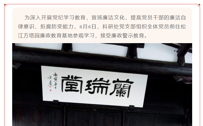 科研处党支部全体党员赴方塔园廉政教育基地接受廉政警示教育
