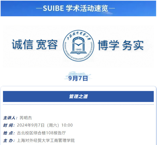 【上经贸大·科研】第一周学术活动预告