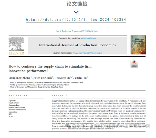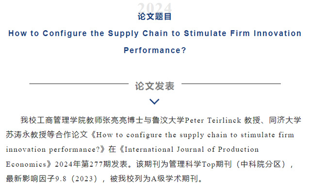 学术前沿 | 我校张亮亮博士合作论文在《International Journal of Production Economics》发表