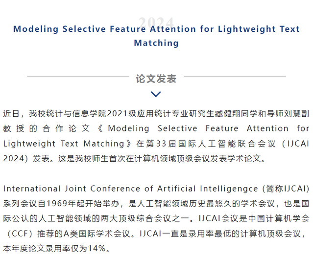 |我校研究生臧健翔和导师刘慧副教授合作论文在IJCAI发表 - 上海对外经贸大学