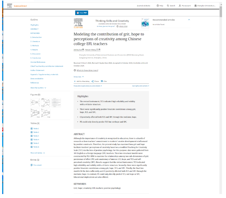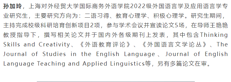 |我校研究生孙加玲和导师王艳艳教授合作论文在Thinking Skills and Creativity发表 - 上海对外经贸大学